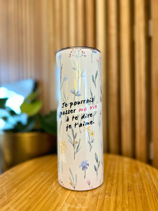 Tasse de voyage avec fleurs beige - Bonnes vacances